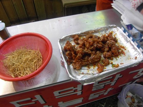 <닭강정맛집> 속초시장닭집의 인삼 닭강정 시식도 푸짐합니다!(옆에 있는것이 인삼!)