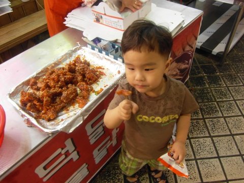 닭강정 시식을 하고 있는 고마아이 ㅋㅋ 맛있나 봅니다. 계속 먹는게 시식으로 한마리는 먹는것 같다라는거 ㅎㅎ