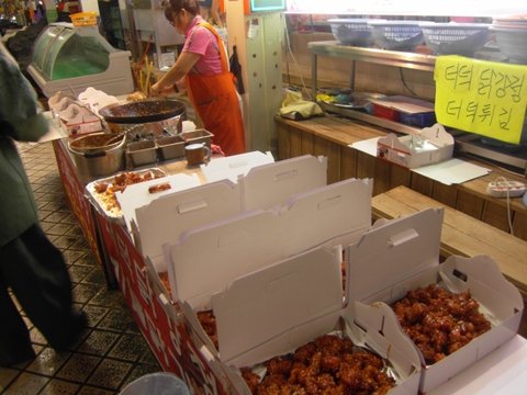 시장닭집 앞에는 이렇게 시식코너도 푸짐하게 준비되어 있습니다!