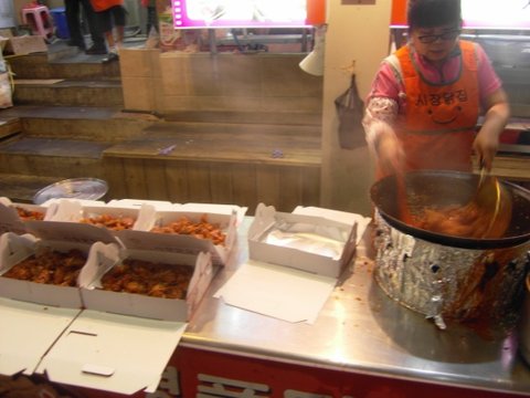 <속초중앙시장 맛집> 현란한 손놀림(^^)으로 열심히 닭강정을 버무리는 아주머니