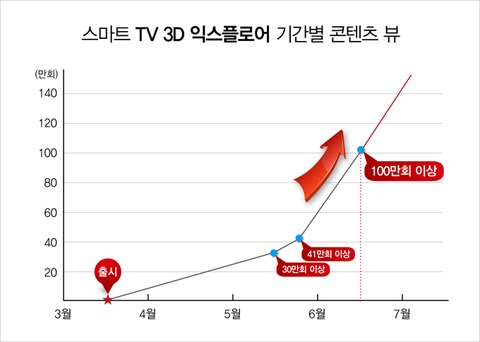 지난 3월 업계 최초로 선보이고 있는 3D VOD 서비스 '3D 익스플로어(Explorer 3D)'가 서비스 시작 불과 100여일만에 100만회 콘텐츠 뷰를 기록했습니다.