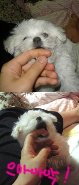 휴우증인가요....심장이 너무 작은가봐요 소심하게 벌벌떨어요..천둥번개만 쳐도..집안에서 꼬리를 팍 내리고 돌아다닌답니다..ㅎㅎ 우리기쁨이가 좀 당당한 남자견이되었으면 좋겠어요!!ㅋㅋㅋ