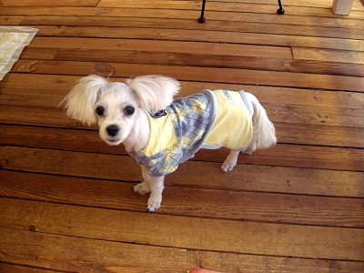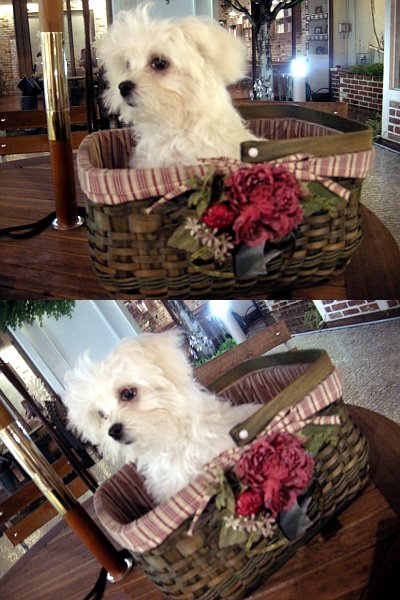 미용을 한번도 못시켰을때 지저분한 채로 바구니 넣어놨었어요 ㅋㅋ