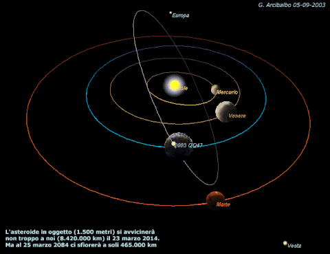 만약 소행성 2003QQ47이 지구에 충돌할 경우 3500메가톤의 TNT폭탄의 위력이며 충돌 이후의