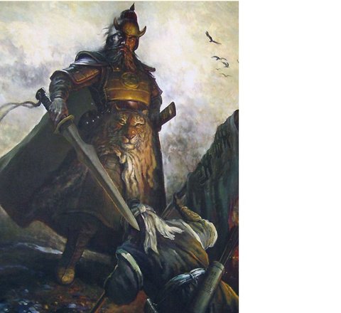 전해지는 전쟁의 신 또는 옛 부족의 지도자라고 알려져 있습니다.