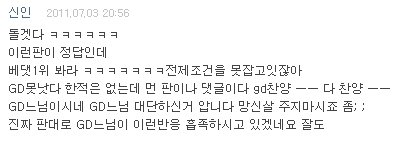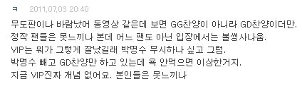 : 진짜 이건 너무 화났어요. 저희가 무조건 적으로 권지용 GG GD만 외치니까 이런 결과가 나오죠.