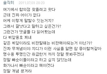 : 진짜 제발 이런 소리 듣고 싶지 않잖아요? 이 분도 닉네임 보니까 븨앞이신데.