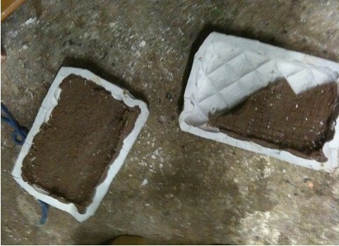 안의 유토를 다 제거하면, 석고에 이탈제(왁스)를 바르고 폴리에스터(플라스틱)를 부어요.