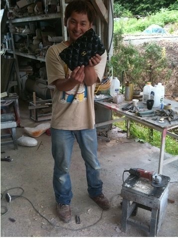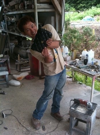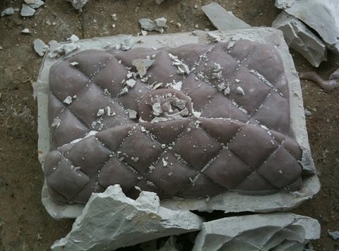 저건 쪼갬볼 자리로부터, 석고를 양쪽으로 가르고 안의 유토를 제거하는 장면입니다.