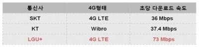 현재 나와 있는 정보에 의하면 LGU+의 LTE속도가 KT나 SKT 4G에 비해