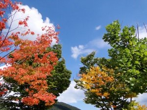 나무들도 두 계절의 모습을 동시에 보여줬음. ㅋㅋ