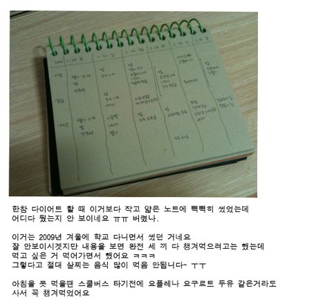 그날 먹은거 다 적었어요. 인터넷으로 쳐서 칼로리까지 ㅋㅋ 그래서 지금은 왠만한 음식 칼로리는 거의다알아요 ㅋㅋ 하루칼로리 1200~1600에 맞추려고 노력하구요. 그 이상일때도 물론많죠 ㅋㅋ