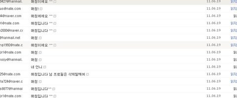오 기분좋아 내 메일에 메일이 하나도 없어 !!! 이뜻은 모두 매치를 시켜줬다 이거지!!!!!!!!!!!!!ㅋㅋ 한 30커플 해준거같애 계속보내주thㅔ 여~