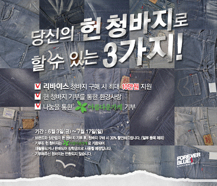 이런 이벤트 이용하면 헌 청바지 기부를 해서 필요한 사람에게 도움을 줄 수도 있고,