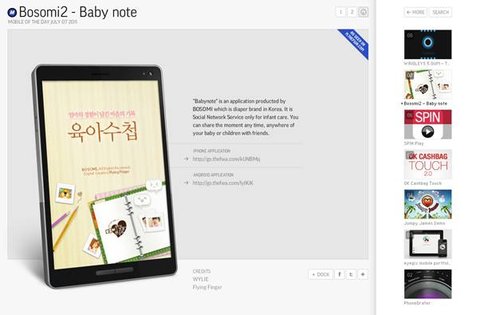 7월 7일엔 보솜이 육아수첩 어플이 역시 오늘의 모바일(Mobile of the Day)에 선정되었는데요.