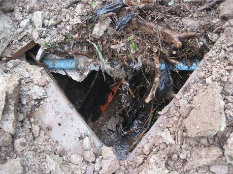 물이 내려가야할길을 온갖 쓰레기로 막혀 물이 내려가야할 맨홀이 잘못된 공사로 인해 쓰레기를 걸러 내는 역할을 하고 있던 것입니다.
