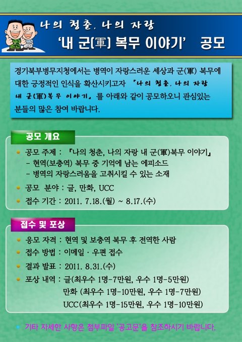 [병무청 공모전] 내 군(軍)복무 이야기 (~ 8/17 까지)