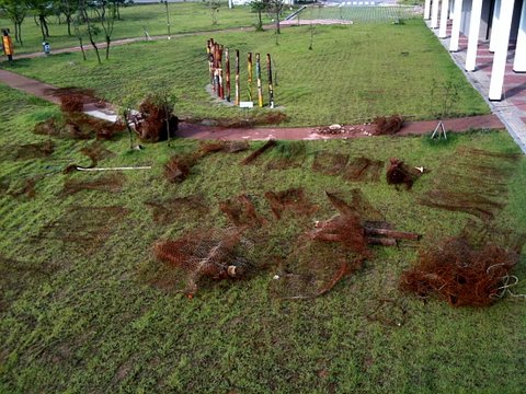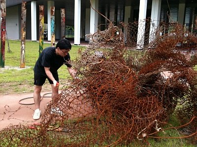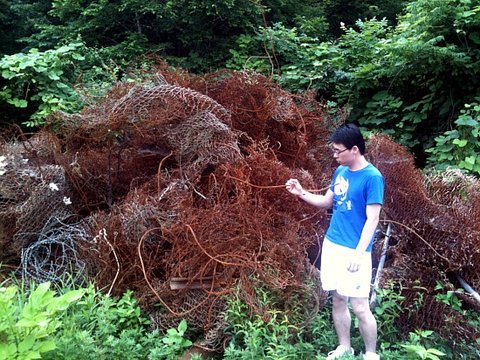 상당한 노동력을 요하는 일입니다. 구겨진 철망 풀어헤치는 일은 쉬운 일이 아니었네요.