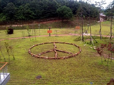 이곳이 바로 "Peace!"가 설치될 장소입니다. (DMZ 박물관 테라스에서 내려다 본 모습입니다.)