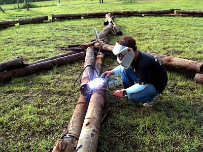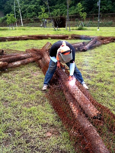 저~기 용접기 보이시죠? 저걸로 지져 붙일 거네요.ㅋㅋ 바람이나, 사람의 손이나.. 어떤 물리적 힘으로부터 저 형태가 흐트러지지 않도록 고정을 해야 해요. 내일이면 지지리~ 꼭 찌지리~(대학교 때.. 제가 용접 지질 때 마다 선배와 함께 즐겨 부르던 노래입니다.ㅋㅋㅋ)