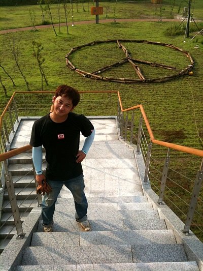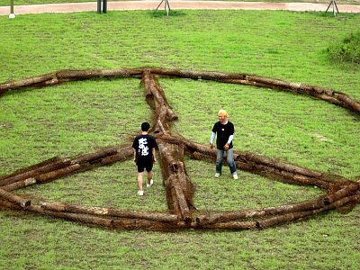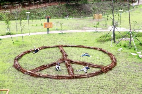 오랜 생각 끝에.. 구상이 나왔습니다. 바로 Peace! 우리를 가르고 있던 철조망으로 이제는 평화를 상징하자는 어렵지 않은 발상이었죠. 저는 팝 아티스트니까요..ㅋ