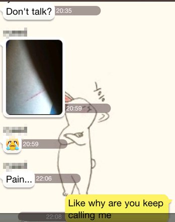손목 그은듯 보이는 사진을 보낸거임;;;;;;; 헐 ;;;;;;;;;;;;;;; 뭐지 이놈;;;;;;;;;;;;;;;;;;;;;;;;;;