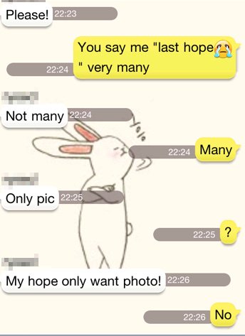 당신 나한테 연락하지말아달라고 제발 하지말라고 당신한테 실망했고 이런피해는 내가 마지막이였음 좋겠다. 당신 덕분에 일본인과 친해지려했던 내가 어리석었다는것을 깨닫게 해줘서 고맙다. 당신은 정말 사람이 참는데 한계를 느끼게한다. 다시는 연락하지 않았으면 좋겠다.