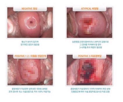 나머지 하단에 세번째, 네번째 사진들은 자궁경부암 단계이지요...