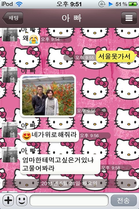 여러가지 사정때문에 서울행을 못하셨음 ㅠㅠ 그래서 아빠가 보낸 카톡임 ㅎㅎ