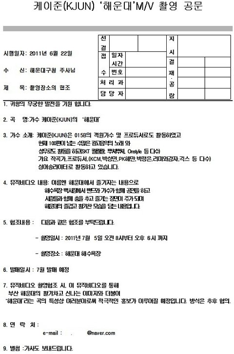그때 곡 발매시기는 7월 중순으로 결정이 났고 공문을 보낸게 6월 22일 이었습니다.