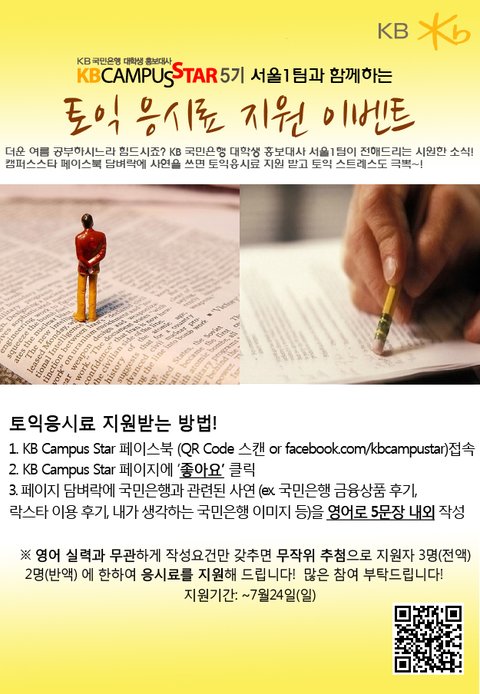 [토익응시료 지원 이벤트] KB Campus Star 페이스북에 글쓰시고 토익응시료 받으세요!
