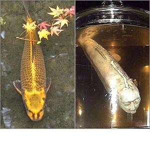 미스테리8.머리가 하나인 두물고기(수정한 부분) 이건 새로운 종이아니라 돌연변이일가능성이 큰 동물이죠.. 샴증후군이란 유전 결함을 가지고 태어난 물고기일 겁니다
