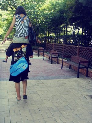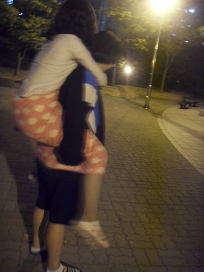 여튼 완전 들뜬 마음으로 수영장을 가는길에 꽈당녀가 다리가아프댔나?그래서 나님이 목마를 태워주기로함