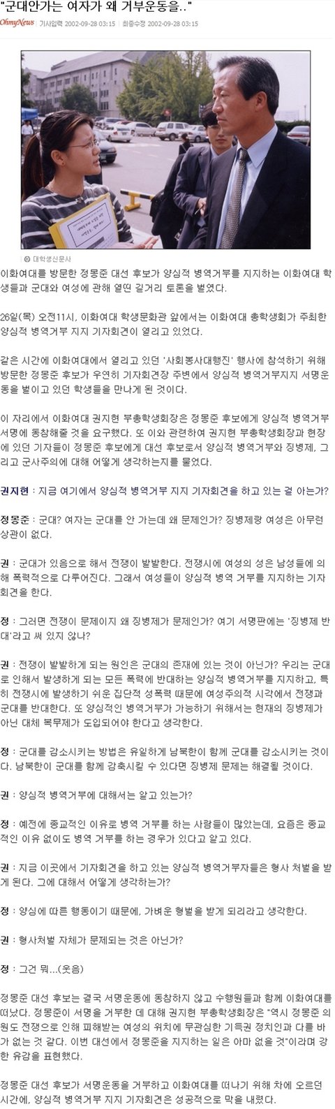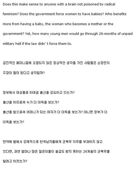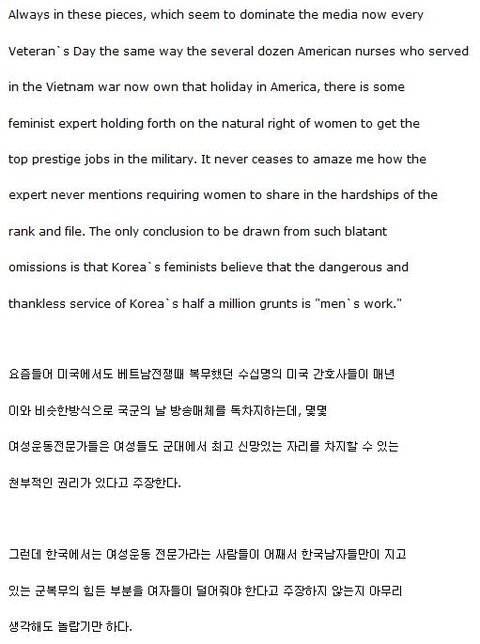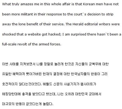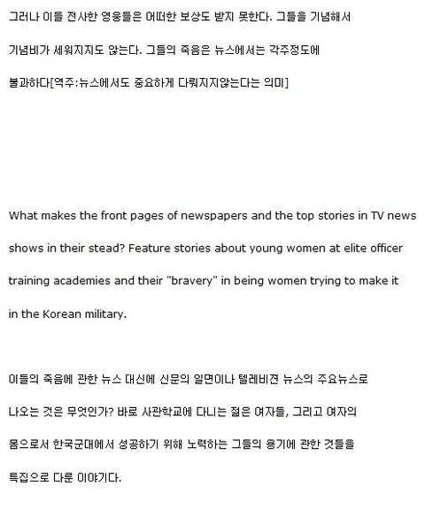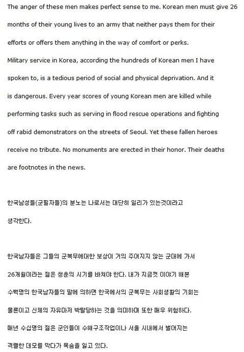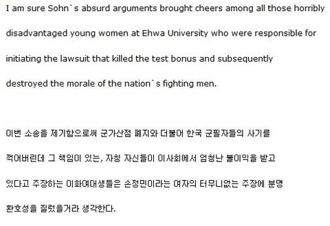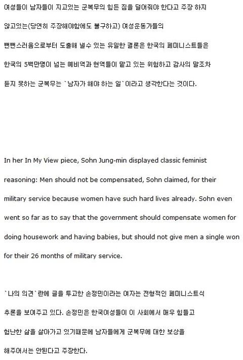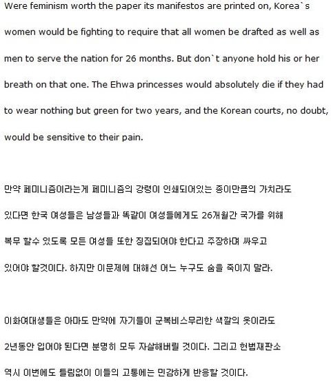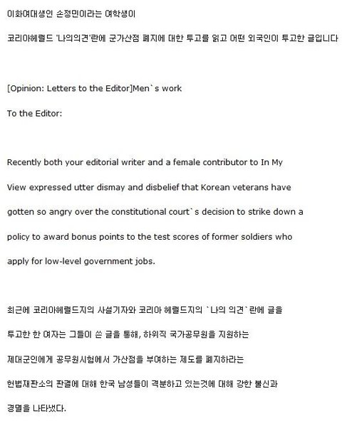 아래는 이화여대생인 손정민 이라는 여학생이 코리아 헤럴드 '나의의견' 란에