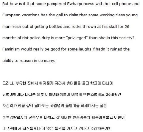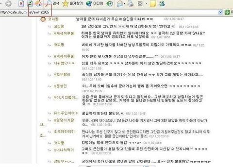 군을 비하하는 일부 여성 네티즌과 페미니스트들에 대해 남성 네티즌들은 분통을 터뜨리고 있다.