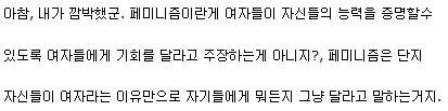 다음은 남성 네티즌들이 도마에 올려 재회자 시키고 있는 일부 여성 페미니스트들의 발언이다.