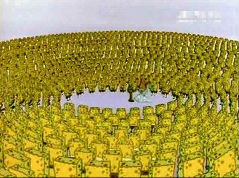 스폰지밥도 평소의 그와 다르게 야유하고 있었다.