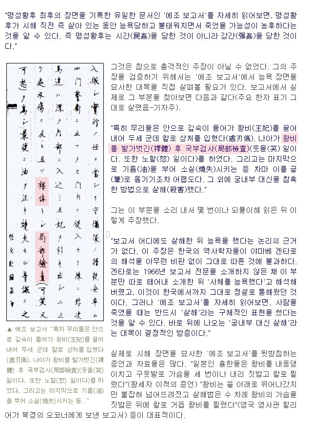 일어난 일에 대해 보고를 드리고자 합니다.민비는 강제로 저고리가 벗겨져 가슴이 훤히 드러난