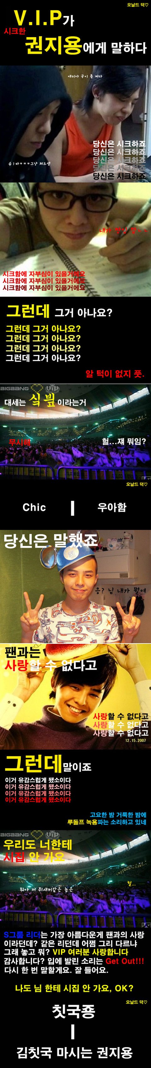 이렇게까지 진화한이유는 역시 시크한 빅뱅의 애정결핍으로 지친 vip가 애교만점 투애니원에게서 달래고잇는건아닐까.