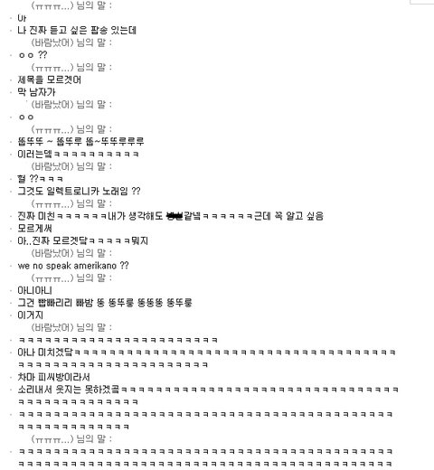 친구의 대화내용을 보고 있어도 나는 보는게 아니엿슴... 이미ㅣ 나의 뇌는 그 리듬에 점령당해서 아무것도 보이지도 않앗던 것이엿슴..