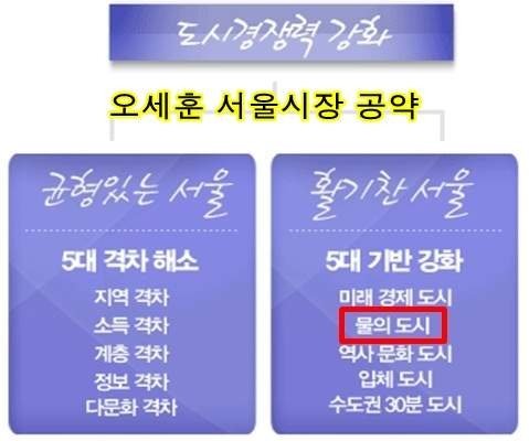 서울 시장 오세훈 시장이 공약을 내세웠던 물의도시 공약 실현