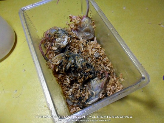 역시 쥐가 죽은뒤에 사체로 인한 베딩의 썩은냄새와 쥐 자체의 썩은냄새가 심했습니다.