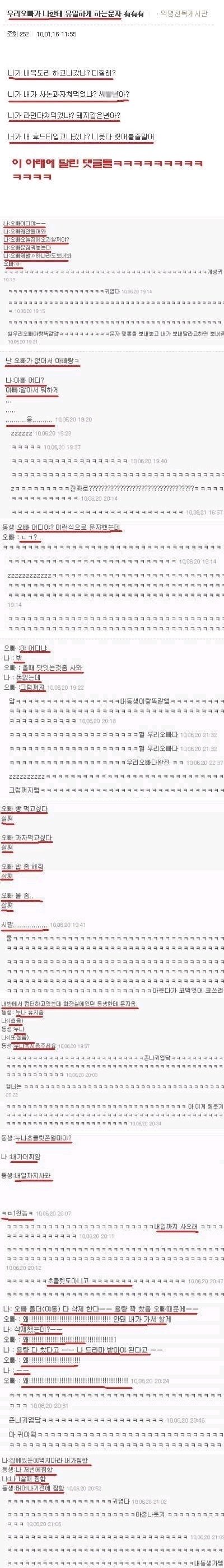 오빠나 남동생과의 유일한 문자