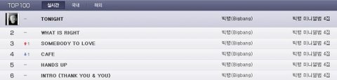 ↓↓빅뱅 앨범 전곡 다 순위권 올킬했었고요.↓↓