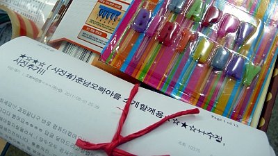 ㅋㅋㅋㅋ이건 오빠 상자에 다 넣고!! 판에 글쓴것도 복사해서..ㅎㅎㅎㅎㅎㅎㅎㅎㅎㅎ오빠가 싸지방(싸이버 지식 정보방 ;군대의 피씨방이죠!)을 못간다해서요ㅠ_ㅠ 그리고 놀라게 해주려고..ㅋㅋㅋㅋㅋㅋㅋ