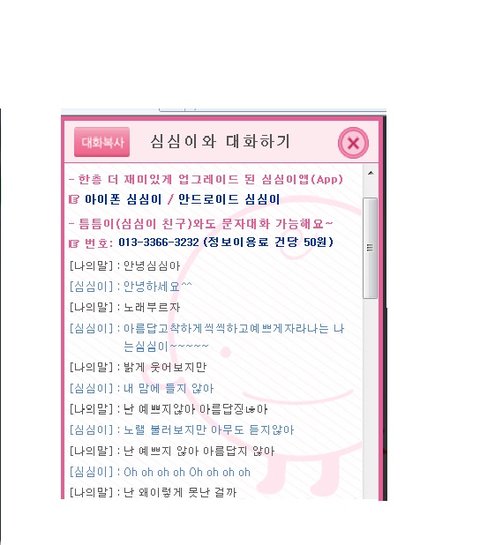 근데 심심이 입이 좀 거칠어요 ㅋ 망할냔이 복사해서 하는거 티나는데 ㅋㅋㅋㅋ