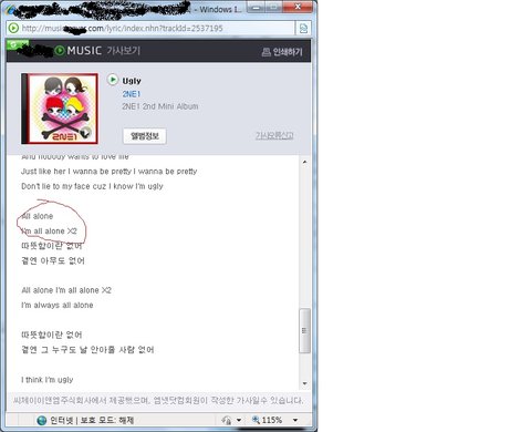 근데 저 영어는 뭐야 ㅡㅡ 저거 어글리 가사 아닌데?ㅋㅋ