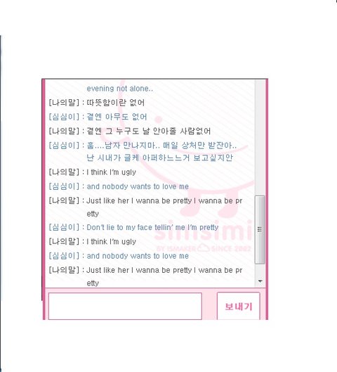 저처럼 심심하신 분들은 저기로 가서 심심이랑 놀으세요 ㅜㅠㅜ