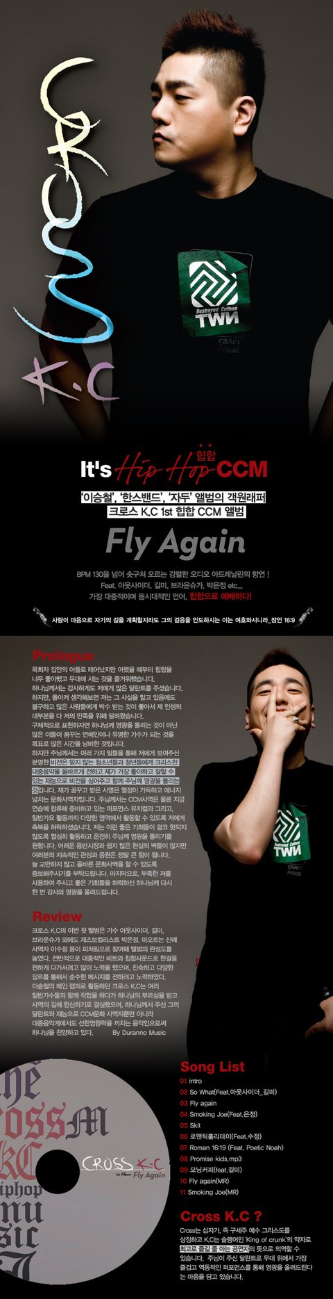 크로스 KC의 이번 첫 앨범은 가수 아웃사이더, 길미, 브라운슈가외에도 재즈보컬리스트 박은정, 떠오르는 신예 사역자 이수정 등이 피쳐링으로 참여해 앨범의 완성도를 높였습니다. 전반적으로 대중적인 비트와 힙합사운드로 한걸음 편하게 다가서려고 많이 노력을 했으며, 친숙하고 다양한 장르를 통해서 순수한 메세지를 전하려고 노력하였습니다. 이승철의 메인 랩퍼로 활동하던 크로스 KC는 여러 일반가수들과 함께 작업을 하다가 하나님의 부르심을 받고 사역의 길에 헌신하기로 결심했으며, 하나님께서 주신 그의 달란트와 재능으로 CCM문화 사역자뿐만 아니라 대중음악계에서도 선한영향력을 끼치는 음악인으로써 하나님을 찬양하고 있습니다.