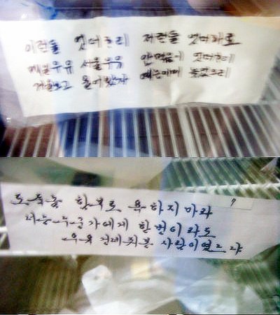 복도 중간에 있는 냉장고에 보관해야했어요.